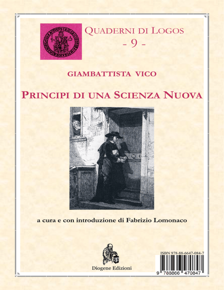 QUADERNI DI LOGOS -9GIAMBATTISTA VICO PRINCIPI DI UNA SCIENZA NUOVA a cura e con introduzione di Fabrizio Lomonaco ISBN 978-88-6647-084-7 Diogene Edizioni Dipartimento di Studi Umanistici Università degli Studi di Napoli “Federico II” Quaderni di Logos -9collana di testi e studi diretta da Fabrizio Lomonaco Diogene Edizioni Comitato scientifico: Paolo Amodio, Gianfranco Borrelli, Giuseppe Cacciatore, Matthias Kaufmann, Edoardo Massimilla, Lidia Palumbo, Rocco Pititto, José M. Sevilla Fernandez. Tutti i saggi pubblicati in questa collana vengono sottoposti a blind peer review GIAMBATTISTA VICO PRINCÌPI DI UNA SCIENZA NUOVA INTORNO ALLA NATURA DELLE NAZIONI PER LA QUALE SI RITRUOVANO I PRINCÌPI DI ALTRO SISTEMA DEL DIRITTO NATURALE DELLE GENTI a cura e con introduzione di Fabrizio Lomonaco Diogene Edizioni Questa opera è protetta dalla Legge sul diritto d’autore (Legge n. 633/1941: http://www.interlex.it/testi/l41_633.htm#1). Tutti i diritti, in particolare quelli relativi alla traduzione, alla citazione, alla riproduzione in qualsiasi forma, all’uso delle illustrazioni, delle tabelle e del materiale software a corredo, alla trasmissione radiofonica o televisiva, alla registrazione analogica o digitale, alla pubblicazione e diffusione attraverso la rete internet sono riservati, anche nel caso di utilizzo parziale. La riproduzione di questa opera, anche se parziale o in copia digitale, è ammessa solo ed esclusivamente nei limiti stabiliti dalla Legge ed è soggetta all’autorizzazione scritta dell’Editore. La violazione delle norme comporta le sanzioni previste dalla legge. Diogene Edizioni - I 80038 Pomigliano d’Arco (NA) http://www.diogeneedizioni.it/ © 2014 by Diogene Edizioni Tutti i diritti sono riservati Prima edizione italiana gennaio 2014 ISBN 978-88-6647-084-7 (ebook) Questo volume si avvale dei contributi finanziari della Regione Campania, della Fondazione “Pietro Piovani per gli studi vichiani” di Napoli e del Dipartimento di Studi Umanistici dell’Università degli Studi di Napoli “Federico II”. INDICE Per la Scienza Nuova Prima. Introduzione di Fabrizio Lomonaco Giambattista Vico, Princìpi di una Scienza Nuova VII 1 PER LA SCIENZA NUOVA PRIMA 1. Che cosa accade nella biografia intellettuale di Vico all’altezza degli anni Venti e matura nel 1725 con la Scienza Nuova? Alle spalle il filosofo ha l’ambiziosa costruzione del Diritto universale che, nel De uno del 1720, il primo dei tre libri, propone, nel 1720, un approccio filosofico specifico nel teorizzare l’unità e l’unicità del principium iuris che è Dio. Così si consolidano, nella radicale trasformazione, due istanze precedenti: la prima, risalente al De ratione e alla notevole lezione di Bacone, che è metodologica non in senso puro ma critico, capace, cioè, di isolare le nuove categorie dell’antropologia (fantasia, memoria e ingegno) per una pratica di eloquenza per il significato civile del nesso sapientia-prudentia con l’intuizione del senso comune che è già nell’orazione del 1709 l’innovazione più radicale; la seconda, risalente al De antiquissima del 1710, in cui la querelle circa la sapienza antichissima degli italici implica un corpo a corpo con un altro modello di scienza, quello francese cartesiano fondato sulle prerogative di un’astratta autofondazione del cogito, via di accesso, secondo Vico, al solipsismo e allo scetticismo della ratio moderna. Non è un’altra astrazione quella che il filosofo napoletano persegue, ma una metafisica per dare efficacia alla prudentia e ritrovare nella sapientia la scienza dell’uomo quale soggetto di una ragione attiva che si fa nell’azione e scopre le ragioni di una morale non provvisoria come accade in ambiente cartesiano. L’opera del 1710 prevedeva la realizzazione di tre libri dedicati rispettivamente alla metafisica (l’unico pubblicato), alla morale e alla fisica. Su questi due versanti il filosofo tace per circa dieci anni e prepara la riflessione sulla fisica dell’umano, quel mondo del certum che integra la discussione sul verum-factum, passando dal mondo della conoscenza a quello della pratica. Intervengono, così, il diritto e tutto il suo mondo, storicamente definito dall’elogiato modello romano (già discusso in un’ampia sezione del De ratione con particolare riferimento a due leggi, le XII Tavole e la Lex regia, salvate nelle opere successive), per coniugare filosoficamente il verum e l’auctoritas, per impostare il nuovo significato di metafisica del genere umano nel confronto ineludibile con Grozio fatto di molte prese di distanza ma di assunzioni rilevanti. Lo testimoniano le argomentazioni di tono “politico” (magistralmente sollevate dalla ben nota lettura del Giarrizzo, acuto anche nel prospettare una redazione del De uno successiva al De constantia)1 sull’orgine dello ius imperii e sulla potestas, sulla definizione del dominium acquirendum del foedus aequale o inaequale nella definizione del vincolo (nexus) clientelare in rap1 Mi riferisco naturalmente ai noti studi raccolti in Vico, la politica e la storia, Napoli, Guida, 1981, spec. p. 88 e ssg. VIII Fabrizio Lomonaco porto ai caratteri della società feudale che privilegia il modello germanico (Tacito) e può sostenere la teorizzata antinomia tra ebrei e gentes. E tutto ciò mette in campo il tema tradizionale del diritto naturale, innovandolo con il riferimento alle gentes e alla loro formazione nazionale e plurale in una dimensione non dimentica del comune che fa della filosofia come antropologia pragmatica e civile il nuovo centro di sintesi di filologia e filosofia. È un itinerario che parte dalla definizione di principia in cui si rintracciano le condizioni di «nova scientia tentatur», come si legge nella parte II del libro secondo del Diritto universale dedicato al De constantia philologiae2. È qui che si avvia, infatti, un’articolata riflessione sui principia humanitatis, partendo dai concetti di pudore e di libertà che s