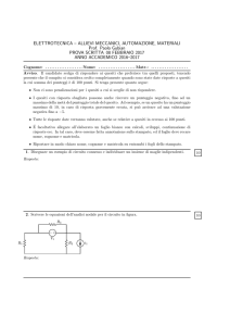 Università degli Studi di Pavia Facoltà di Ingegneria Corso di Corso di Teoria dei Circuiti Elettrotecnica Doppi pp bipoli p Dipartimento di Ingegneria Elettrica www.unipv.it/electric/cad Doppio bipolo Che cos’è? E’ un dispositivo con due porte di scambio della potenza elettrica (Porta = coppia di morsetti attraversati da corrente uguale g ed opposta) pp ) I1 1 I1 1’ Porta di ingresso 1 1-1 1’ Dipartimento di Ingegneria Elettrica 2 I2 I2 2’ Porta di uscita 2 2-2 2’ www.unipv.it/electric/cad Doppio bipolo Esempi Mutuo induttore Trasformatore Linea elettrica Transistore Dipartimento di Ingegneria Elettrica www.unipv.it/electric/cad Doppio bipolo Descrizione Regime di funzionamento: Stazionario P.A.S. Variabile Caratteristica del D.B.: Attivo,, passivo p Lineare, non lineare I1 I1 Dipartimento di Ingegneria Elettrica 1 1’ 2 2’ I2 I2 www.unipv.it/electric/cad Doppio bipolo D.B. lineare e passivo in regime P.A.S. I1 I1 1 V1 1’ 2 V2 2’ I2 I2 (V1, I1) alla porta 1 (V2, I2) alla porta 2 Il D.B. impone due relazioni fra le quattro variabili 1. ((I1, I2) Variabili indipendenti 2. (V1, V2) 3. ((I1, V2) 2 Casi possibili 4. (V2, I2) 5. ((I2, V1) Duale di 3 6 6. (V1, I1) Duale di 4 Dipartimento di Ingegneria Elettrica www.unipv.it/electric/cad Doppio bipolo Un doppio bipolo lineare e passivo (R,L,M,C) è reciproco se avviene che (1): E1 II’2 E1=E2 Dipartimento di Ingegneria Elettrica II’’1 I2’=I =I1’’ , E2 E1/I2’=E =E2/I1’’ www.unipv.it/electric/cad Doppio bipolo Un doppio bipolo lineare e passivo (R,L,M,C) è reciproco se avviene che (2): A1 V’2 V A1=A2 Dipartimento di Ingegneria Elettrica A2 V’’ V 1 V2’=V =V1’’ , A1/V2’=A =A2/V1’’ www.unipv.it/electric/cad Doppio bipolo Un doppio bipolo lineare e passivo (R,L,M,C) è reciproco se avviene che (3): A1 II’2 A1=E2 E2 V’’ V 1 I2’=V1’’ , A1/I2’=E2/V1’’ Scambiando ingresso e uscita il comportamento t t del d l D.B. D B non cambia bi Dipartimento di Ingegneria Elettrica www.unipv.it/electric/cad Doppio bipolo E1 Esempio (1) R1 R2 E2 I’’ = 1 R1 R1 R2 E2 R2 A2 R A1 R1 R2 V’’ 1 = R2 A2 R1 V’2 = R2 A1 Dipartimento di Ingegneria Elettrica www.unipv.it/electric/cad Doppio bipolo Esempio (2) A1 R1 R2 V’’ V 1 = E2 II’2 = A1 R1 R2 E2 Le tre proprietà sono verificate Dipartimento di Ingegneria Elettrica www.unipv.it/electric/cad Doppio bipolo Descrizione del D.B. con parametri Z Le variabili indipendenti sono: I1, I2 I1 I2 V1 V2 V1 =Z Z11I1+Z Z12I2 V2=Z21I1+Z22I2 Dipartimento di Ingegneria Elettrica www.unipv.it/electric/cad Doppio bipolo Descrizione del D.B. con parametri Z I1 I2 V1 V2 ⎛V ⎞ Z11 = ⎜⎜ 1 ⎟⎟ ⎝ I1 ⎠I V1=Z11I1+Z12I2 V2=Z21I1+Z22I2 Impedenza propria alla porta 1 con 2 aperta 2 =0 ⎛V ⎞ Z12 = ⎜⎜ 1 ⎟⎟ ⎝ I2 ⎠I =0 ⎛V ⎞ Z 22 = ⎜⎜ 2 ⎟⎟ ⎝ I2 ⎠I =0 Impedenza propria alla porta 2 con 1 aperta 1 Impedenza di trasferimento fra 1 e 2 1 ⎛V ⎞ Z 21 = ⎜⎜ 2 ⎟⎟ ⎝ I1 ⎠I Impedenza di trasferimento fra 2 e 1 2 =0 Si nota che tutti i parametri Z sono definiti a vuoto Dipartimento di Ingegneria Elettrica www.unipv.it/electric/cad Doppio bipolo Descrizione del D.B. con parametri Z Il circuito equivalente più generale (che soddisfa le equazioni scritte) risulta: 1 Z21 I1 Z11 1’ Z12 I2 Z 22 2 2’ É caratterizzato da due generatori ideali di tensione comandati da corrente Dipartimento di Ingegneria Elettrica www.unipv.it/electric/cad Doppio bipolo Descrizione del D.B. con parametri Z Linea a “T” Linea a “π” π S il D Se D.B. B è passivo i e Z12=Z Z21 Il D.B. D B è RECIPROCO Al Alcuni i circuiti i iti non ammettono tt lla d descrizione i i con parametri ti Z, ad esempio: Linea Dipartimento di Ingegneria Elettrica Trasformatore ideale www.unipv.it/electric/cad Doppio bipolo Descrizione del D.B. con parametri Y Le variabili indipendenti sono: V1, V2 I1 I2 V1 V2 I1 =Y Y11V1+Y Y12V2 I2 =Y21V1+Y22V2 Dipartimento di Ingegneria Elettrica www.unipv.it/electric/cad Doppio bipolo Descrizione del D.B. con parametri Y I1 I2 V1 V2 ⎛I ⎞ Y11 = ⎜⎜ 1 ⎟⎟ ⎝ V1 ⎠ V =0 2 ⎛ I ⎞ Y12 = ⎜⎜ 1 ⎟⎟ ⎝ V2 ⎠ V =0 I1 =Y11V1+Y12V2 I2 =Y21V1+Y22V2 Ammettenza propria alla porta 1 con la porta 2 in corto circuito ⎛I ⎞ Y22 = ⎜⎜ 2 ⎟⎟ ⎝ V2 ⎠ V =0 Ammettenza propria alla porta 2 con la porta 1 in corto circuito 1 Ammettenza di trasferimento fra porta 1 e 2 1 ⎛I ⎞ Y21 = ⎜⎜ 2 ⎟⎟ ⎝ V1 ⎠ V =0 Ammettenza di trasferimento fra porta 2 e 1 2 Si nota che tutti i parametri Y sono definiti in corto circuito Dipartimento di Ingegneria Elettrica www.unipv.it/electric/cad Doppio bipolo Descrizione del D.B. con parametri Y Il circuito equivalente più generale (che soddisfa le equazioni scritte) risulta: I1 V1 I2 Y11 Y22 Y12 V2 V2 Y21 V1 É caratterizzato da due generatori ideali di corrente comandati da tensione Dipartimento di Ingegneria Elettrica www.unipv.it/electric/cad Doppio bipolo Descrizione del D.B. con parametri Y Linea a “π” Linea a “T” T S il D Se D.B. B è passivo i e Y12=Y Y21 Il D.B. D B è RECIPROCO Al Alcuni i circuiti i iti non ammettono tt lla d descrizione i i con parametri ti Y, ad esempio: Linea Dipartimento di Ingegneria Elettrica Trasformatore ideale www.unipv.it/electric/cad Doppio bipolo Descrizione del D.B. con parametri ibridi H Le variabili indipendenti sono: I1, V2 I1 I2 V1 V2 V1= h11I1+h h12V2 I2 = h21I1+h22V2 Dipartimento di Ingegneria Elettrica www.unipv.it/electric/cad Doppio bipolo Descrizione del D.B. con parametri H I1 I2 V1 V2 ⎛V ⎞ h11 = ⎜⎜ 1 ⎟⎟ ⎝ I1 ⎠ V =0 V1 =h11I1+h12V2 I2 =h21I1+h22V2 Impedenza propria alla porta 1 con la porta 2 in corto circuito [Ω] 2 ⎛I ⎞ h22 = ⎜⎜ 2 ⎟⎟ ⎝ V2 ⎠I =0 Ammettenza propria alla porta 2 con la porta 1 aperta [Ω-1] 1 ⎛ V1 ⎞ ⎜ h12 = ⎜ ⎟⎟ ⎝ V2 ⎠I =0 Funzione di trasferimento fra tensioni con la porta 1 aperta (adimensionale) 1 ⎛ I2 ⎞ h21 = ⎜⎜ ⎟⎟ ⎝ I1 ⎠ V =0 2 Dipart