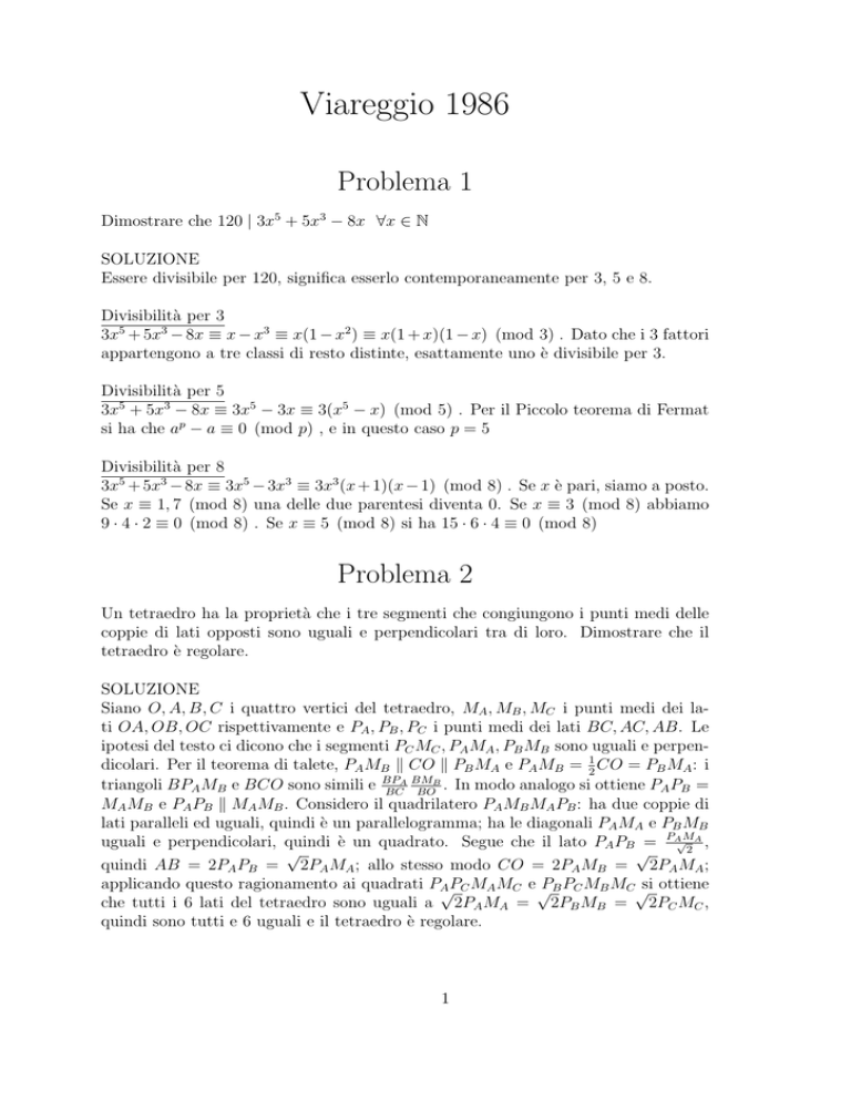 3x5 + 5x3 − 8x ≡ 3x5 − 3x3 ≡ 3x3 (x + 1)(x − 1) (mod 8) . Se x è pari, siamo a posto.