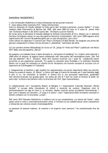 giovedi 12 febbraio, ore 20.30 Il Flauto magico secondo l’Orchestra di Piazza Vittorio stagi onc one c tica ertis 2014 -2015 con il contributo di Il Flauto Magico secondo l’Orchestra di Piazza Vittorio ispirato all’opera in due atti di Wolfgang Amadeus Mozart Direzione artistica e musicale Mario Tronco Elaborazione musicale Mario Tronco e Leandro Piccioni Acquarelli, animazione e scene Lino Fiorito Disegno luci Pasquale Mari Costumi Ortensia De Francesco Direttore tecnico e datore luci Daniele Davino Fonico di sala Gianni Istroni Fonico di palco Massimo Cugini Backliner Lorenzo Policiti Motion designer Daniele Spanò Costumista Katia Marcanio Tour Manager Federica Soranzio Produzione esecutiva Pino Pecorelli per Vagabundos s.r.l PERSONAGGI E INTERPRETI Houcine Ataa (Tunisia) voce - Monostatos Peppe D’Argenzio (Italia) sax baritono e soprano, clarinetti Omar Lopez Valle (Cuba) tromba, flicorno - Narratore Awalys Ernesto Lopez Maturell (Cuba) batteria, congas - Tamino Zsuzsanna Krasznai (Ungheria) violoncello - Dama Luca Bagagli (Italia) violino - Dama Gaia Orsoni (Italia) viola - Dama Carlos Paz Duque (Ecuador) voce, flauti andini - Sarastro Sanjay Kansa Banik (India) tablas - voce Pino Pecorelli (Italia) contrabbasso, basso elettrico - Ragazzo Leandro Piccioni (Italia) pianoforte Raul Scebba (Argentina) marimba, percussioni, timpani - Sacerdote El Hadji Yeri Samb (Senegal) voce, djembe, dumdum, sabar - Papageno Dialy Mady Sissoko (Senegal) voce, kora - Ragazzo Ziad Trabelsi (Tunisia) oud, voce - Messaggero della Regina della Notte Emanuele Bultrini (Italia), chitarre - Ragazzo Fabrizio Savone (Italia) trombone, euphonium Stan Adams (Inghilterra) trombone e i musicisti ospiti Maria Laura Martorana (Italia) voce - Regina della Notte Sylvie Lewis (Inghilterra) - voce, chitarra - Pamina L’orchestra di Piazza Vittorio è nata in seno all’Associazione Apollo 11 ed è stata ideata e creata da Mario Tronco ed Agostino Ferrente. Il Flauto Magico secondo l’Orchestra di Piazza Vittorio L’ idea è nata nel 2007 da una proposta di Daniele Abbado per la Notte Bianca di Reggio Emilia. Il progetto ci sembrava folle, poi abbiamo deciso di svilupparlo come se l’opera di Mozart fosse una favola musicale tramandata in forma orale e giunta in modi diversi a ciascuno dei nostri musicisti. Come accade ogni volta che una storia viene trasmessa di bocca in bocca, le vicende e i personaggi si sono trasformati, e anche la musica si è allontanata dall’originale. I ruoli sono stati affidati ai musicisti in base ad una somiglianza di carattere o per affinità con certe esperienze vissute: per esempio Tamino è Ernesto Lopez Maturell, un ragazzo che ha tutta l’esuberanza della sua giovane età. Più che dall’amore per Pamina, interpretata dalla folk singer anglo-americana Sylvie Lewis che è una persona dolce ma determinata, il nostro principe è mosso dal desiderio di avventura e dalla paura dell’ignoto, che a quell’età si trasforma in eccitazione. Il mago Sarastro è Carlos Paz, un artista con un rapporto molto forte con la politica e la religione, che ci racconta spesso dei riti sciamani del suo paese; lui stesso ha qualcosa dello sciamano. Quella della Regina della Notte è una delle poche parti occidentali, è interpretata da Maria Laura Martorana, una virtuosa del canto lirico con un repertorio molto vasto. La sua Regina ha un carattere misterioso, insieme solare e cupo; è animata da sprazzi di energia ma alla fine crollerà come una cantante da club fuori forma. E per diretta assonanza Pap Yeri Samb è stato subito Papageno, una persona semplice e profonda con un carattere molto vicino al personaggio di Mozart. Volevamo raccontare un Flauto contemporaneo, che si svolge in una società multirazziale di questi tempi, ed evitare qualsiasi fraintendimento. Il Flauto di Mozart è ambientato in un Egitto fantastico. Il nostro invece si trova in un luogo immaginario, senza riferimenti alla geografia reale. Non si tratta dell’esecuzione integrale dell’opera di Mozart. Le melodie sono riconoscibili ma alcune sono solo tratteggiate, senza sviluppo e senza parti virtuosistiche, intrecciate a brani originali dell’Orchestra. Il nostro lavoro con la partitura è necessariamente diverso da quello di un’orchestra “normale”. Dal folk, al reggae alla classica al pop e al jazz, la nostra musica è piena di riferimenti alle altre culture. I musicisti dell’OPV hanno background molto distanti, non solo geograficamente. Ogni musicista porta nell’Opera la sua cultura, la sua lingua: arabo, inglese, spagnolo, tedesco, portoghese, wolof, italiano. L’Orchestra è sul palco non nella buca, come nelle opere, e i musicisti diventano personaggi semplicemente indossando in scena il loro costume e guadagnando il proscenio. Orchestra di Piazza Vittorio Diciotto musicisti che provengono da dieci paesi e parlano nove lingue diverse. Insieme, trasformano le loro variegate radici e culture in una lingua singola, la musica. Questa è l’Orchestra di Piazza Vittorio. Partendo dalla musica tradizionale di ogni paese, mischiandola e intingendola con rock, pop, reggae, e classica, si arriva alla sonorità unica dell’OPV. Tra musicisti che partono e altri che arrivano, cambia il suono dell’orchestra senza mai tradire la vocazione iniziale a sfide nuove e orizzonti aperti al mondo intero. Una fusione di culture e tradizioni, memorie, sonorità antiche e nuove, strumenti sconosciuti, melodie universali, voci dal mondo. Dal salvataggio dello storico Cinema Apollo di Roma che rischiava di diventare una sala bingo, si sviluppa l’idea di creare un’Orchestra. Ideata e creata da Mario Tronco e Agostino Ferrente, l’Orchestra di Piazza Vittorio è nata nel 2002 all’interno dell’Associazione Apollo 11, un progetto sostenuto da artisti, intellettuali e operatori culturali che hanno voluto valorizzare il rione Esquilino di Roma, dove gli Italiani sono una minoranza etnica. L’Orchestra di Piazza Vittori