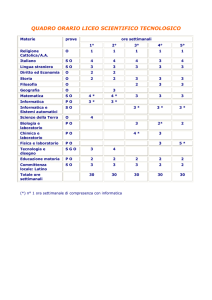 Sperimentazione oraria biennio Igea classi prime e seconde a.s. 2008-2009 + 7 ore di Matematica + 33 ore di Inglese di cui in compresenza con il docente madrelingua 13 ore a.s. 2009-2010 + 7 ore di Matematica + 18 ore di Inglese + 12 ore di conversazione con il docente madrelingua sparisce la compresenza Totale ore in più 25 ( FIS ) + 12 = 37 Totale ore in più 40 ( FIS ) + 13 = 53 Materie coinvolte nella sperimentazione biennio IGEA Classe prima ‐ 4 h Ec. Aziendale ‐ 4 h Diritto ed Economia ‐ 10 h Sc. Materia ‐ 19 h Italiano + 7 h Matematica Laboratorio + 18 h di Inglese + 12 h di conversazione con il docente madrelingua Il monte orario settimanale non cambia Classe seconda ‐ 4 h Ec. Aziendale ‐ 4 h Diritto ed Economia ‐ 10 h Italiano ‐ 19 h Sc. Materia + 7 h Matematica Laboratorio + 18 h di Inglese + 12 h di conversazione con il docente madrelingua Il monte orario settimanale non cambia Specializzazione triennio Igea classi terze a.s. 2008-2009 + 30 ore di Economia Aziendale in compresenza con Inglese per 10 ore Matematica per 10 ore Economia 10 ore a.s. 2009-2010 + 7 ore di Economia Aziendale + 7 ore di Inglese + 7 ore di Matematica + 7 ore di Economia sparisce la compresenza Totale ore in più : 60 ( FIS ) Totale ore in più: 28 ( FIS ) il monte ore settimanale aumenta di 1 ora per 30 settimane il monte ore settimanale aumenta di 1 ora per 28 settimane Sperimentazione liceo linguistico classe prima a.s.2008-2009 + 33 ore di Inglese di cui in compresenza con il docente madrelingua 13 ore + 99 terza lingua Francese + 99 terza lingua Tedesco totale ore in più 231 ( FIS ) + 13 = 244 a.s. 2009-2010 + 18 ore di Inglese + 12 ore di conversazione Inglese con il docente madrelingua + 90 ore di terza lingua totale ore in più 108 ( FIS ) + 12 = 120 Sperimentazione liceo linguistico classe seconda … da progetto a.s. 2009-2010 + 33 ore di Inglese di cui in compresenza con il docente madrelingua 13 ore + 99 terza lingua Francese + 99 terza lingua Tedesco + 33 ore di compresenza del docente madrelingua seconda lingua + 18 ore di Inglese + 12 ore di conversazione Inglese con il docente madrelingua + 12 ore di conversazione Spagnolo con il docente madrelingua (compresenza) + 90 terza lingua Francese + 90 terza lingua Tedesco totale ore in più 231( FIS )+ 33 +13 = 277 totale ore in più 198 ( FIS ) + 24 = 222 Materie coinvolte nella sperimentazione liceo Classe prima + 90 h Lingua straniera 3 +30 h Lingua straniera 1 (di cui 18 con l’insegnante di classe e 12 con l’insegnante madrelingua ) ‐ 22 h Italiano ‐ 16 h Latino ‐ 16 h Matematica ed Informatica ‐ 12 h Scienza della Terra – 8 h Arte o Musica ‐ 8 h Diritto ed Economia ‐ 8 h Geografia il monte ore settimanale aumenta di 1 ora per 30 settimane Materie coinvolte nella sperimentazione liceo Classe seconda +30 h Lingua straniera 1 (di cui 18 con l’insegnante di classe e 12 con l’insegnante madrelingua) + 12 h di conversazione Spagnolo con il docente madrelingua (compresenza) + 90 h terza lingua Francese + 90 h terza lingua Tedesco ‐ 22 h Italiano ‐ 16 h Latino ‐ 16 h Matematica ed Informatica ‐ 12 h Scienza della Terra – 8 h Arte o Musica ‐ 8 h Diritto ed Economia ‐ 8 h Geografia il monte ore settimanale aumenta di 1 ora per 30 settimane