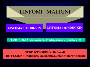 Alma Mater Studiorum – Università di Bologna DOTTORATO DI RICERCA IN ONCOLOGIA E PATOLOGIA SPERIMENTALE PROGETTO N° 1 “ONCOLOGIA” Ciclo XXV Settore concorsuale di afferenza: 06/D3 Settore scientifico disciplinare: MED/06 IDENTIFICAZIONE DI UN PROFILO MOLECOLARE DI RISCHIO NEI PAZIENTI PEDIATRICI AFFETTI DA LINFOMA DI HODGKIN Presentata da: DOTT.SSA FLORA MARINO Coordinatore Dottorato Relatore PROF. SANDRO GRILLI PROF. ANDREA PESSION Esame finale anno 2013 INDICE INTRODUZIONE ...................................................................................................... 5 LINFOMA DI HODGKIN ......................................................................................... 6 Epidemiologia ............................................................................................................................. 6 Eziologia ..................................................................................................................................... 7 Patogenesi ................................................................................................................................... 7 Linfoma di Hodgkin e sistema immunitario ................................................................................. 9 Stadiazione clinico-prognostica ................................................................................................. 10 Istopatologia .......................................................................................................................... 10 Stadiazione ............................................................................................................................ 13 Fattori prognostici clinico-biologici ....................................................................................... 14 DISEGNO E OBIETTIVO DELLO STUDIO .......................................................... 16 MATERIALI E METODI ........................................................................................ 17 Revisione della letteratura ......................................................................................................... 17 Pazienti ..................................................................................................................................... 20 1. Reperimento del materiale istologico ............................................................................. 20 2. Criteri di inclusione nello studio .................................................................................... 21 Analisi molecolari ..................................................................................................................... 21 1. Estrazione dell’RNA dal materiale istologico ................................................................. 21 2. Disegno dei primers per ciascuno dei geni identificati dalla letteratura........................... 21 3. Validazione degli assay TaqMan ................................................................................... 22 4. Analisi in Real Time PCR .............................................................................................. 24 Analisi statistiche ...................................................................................................................... 24 RISULTATI ............................................................................................................. 25 Analisi mediante Real time PCR ............................................................................................... 25 Analisi statistiche ...................................................................................................................... 25 DISCUSSIONE E CONCLUSIONI ......................................................................... 31 BIBLIOGRAFIA ..................................................................................................... 36 2 INDICE DELLE FIGURE Figura 1. EFS pazienti pediatrici arruolati nel Protocollo di trattamento AIEOP LH 2004 ............... 5 Figura 2. Incidenza e mortalità del LH in base all’età ...................................................................... 6 Figura 3. Incidenza tumori in età pediatrica ..................................................................................... 6 Figura 4. Secrezione di citochine disregolatorie da parte del LH...................................................... 8 Figura 5. SUR relativa a 3 popolazioni di studio: (a) infiltrato cellulare con bassi livelli di TIA1 e alti livelli FOXP3, (b) infiltrato cellulare con alti livelli di TIA1 e bassi livelli FOXP3 (c) infiltrato cellulare con intermedi valori di TIA1 e FOXP3 (37) ................................................ 9 Figura 6. FFP (1) e SUR (2) relative all’espressione di MAL (32) ................................................ 18 Figura 7. Lista dei 14 geni risultati essere maggiormente predittivi di prognosi mediante analisi di regressione logistica (3) ......................................................................................................... 18 Figura 8. A: elenco dei geni appartenenti ai 4 pathways funzionali differenti la cui espressione è risultata essere altamente predittiva di cattiva prognosi nel LH; C e D: FFP dopo definizione dei 2 gruppi di rischio (Low e Higt) (34) ............................................................................... 19 Figura 9. ABCC1 e“drug resisteance” nel LH (33) ......................................................................... 20 Figura 10. Risultati di espressione di CASP 3 e CYCS .................................................................. 25 Figura 11. EFS relativa a CASP3 ................................................................................................... 27 Figura 12. EFS relativa a CYCS ..................................................................................................... 27 Figura 13. EFS relativa alla combinazione CASP3/CYCS ............