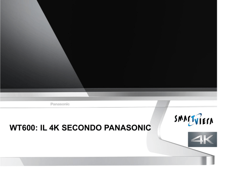 WT600: IL 4K SECONDO PANASONIC WT600: IL PRIMO TV AL MONDO AD AVERE… INGRESSO HDMI 2.0 BENEFICI HDMI 2.0 DISPLAY PORT Gli ingressi di nuovissima generazione HDMI 2.0 costituiscono per il 65WT600 il passaporto per il futuro, assicurandone la compatibilità assoluta con tutti i dispositivi 4K: lettori BD, set-top box, IT device e consolle di gioco di nuova generazione. BENEFICI Il WT600 è il primo TV UHD al mondo dotato di DisplayPort 60p, grazie al quale i contenuti da sorgente PC potranno essere visualizzati sul grande schermo Viera nella definizione 4K. Gli appassionati di gaming, semplicemente collegando il proprio computer al TV, potranno immergersi nell’azione dei propri giochi preferiti grazie a immagini in movimento ancora più nitide per un’esperienza incredibilmente realistica. 2 CERTIFICAZIONE THX 4K ™ Il WT600 è il primo TV 4K Ultra HD in Europa ad aver ricevuto la prestigiosissima certificazione THX4K™, che attesta la capacità di riprodurre fedelmente colori, suoni e immagini in movimento per garantire la massima risoluzione così come pensata dai registi di Hollywood. 3 WT600: DESIGN DI CLASSE Elegante Cornice Ultra-Slim Raffinato Piedistallo in alluminio 4 WT600: IL 4K secondo Panasonic 2 paia di occhialini 3D Attivi VIERA Touch Pad QUALITA’ DELL’IMMAGINE • 4K ULTRA HD LED LCD • Tecnologia 3D Attivo • 4K 2000Hz BLS IFC • Clear Panel Pro • Processore 4K Hexa-core • VR-Audio Pro Surround 2.1 • Certificazione THX 4K • ISFccc Calibration Mode EASY OPERATION • my Home Screen • Interazione Vocale • Riconoscimento Facciale • Videocamera integrata • VIERA Touch Pad • eHELP NETWORKING Processore 4K Hexa-core 4K 2000Hz Bls – Intelligent Frame Creation Ingressi 4K 50/60p HDMI 2.0/ DisplayPort 1.2 • Ingressi 4K 50/60P (HDMI 2.0 / DisplayPort 1.2) • 4K Swipe & Share • 4K SD Photo Viewer • Panasonic TV Remote 2 • Apps for Smart TV • Web Browser • Mirroring • DLNA • Wireless LAN integrato • Media Player • Bluetooth® • 3 HDMI • 3 USB (ver3.0 for Input 1) • SDXC Card Slot ECO •Eco Navigation DESIGN • Elegante Cornice Super Slim 5 WT600: Il 4K Ultra HD di Panasonic 6