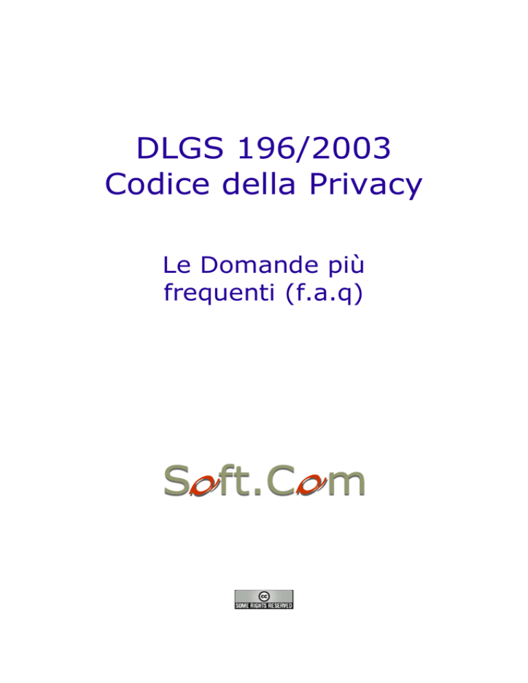 DLGS 196/2003 Codice della Privacy Le Domande più frequenti (f.a.q) DLGS 196/2003 Codice della Privacy - Le Domande più frequenti (f.a.q) – Gennaio 2005 Introduzione..............................................................................................................4 Sicurezza Informatica.....................................................................................................5 D: perché è necessario fornire un nome utente ed una password per accedere al sistema ?. 5 D: quindi, come utente del computer potrei avere delle restrizioni ?................................. 5 D: perché nella schermata di Login (Autenticazione) compare la richiesta, oltre che del nome utente e della Password anche di “Accedi a?”........................................................ 6 D: come posso cambiare la mia password ?...................................................................6 D: come si sceglie una buona password ?......................................................................6 D: perché a volte per accedere ad una Applicazione devo autenticarmi con credenziali diverse ?...................................................................................................................7 D: la password ha una scadenza ?................................................................................7 Copie di Sicurezza..........................................................................................................7 D: che cosa si intende per Copie di Sicurezza (Backup) ?.................................................7 D: come si esegue un Backup ?....................................................................................8 D: quali dati deve comprendere un Backup ?................................................................. 8 D: su quali supporti eseguire il Backup ?.......................................................................8 D: quale software utilizzare ?.......................................................................................8 D: qual' è la frequenza ideale per eseguire un Backup ?.................................................. 8 D: qualche consiglio utile ?..........................................................................................9 Virus & C.......................................................................................................................9 D: ma, in sostanza, un virus informatico che cos'è ?.......................................................9 D: ok; ma come fa un virus ad “entrare” nel mio PC ?...................................................10 D: comincio a preoccuparmi... cosa devo fare ?............................................................10 Aggiornamento e manutenzione del Sistema....................................................................11 D: come fare a configurare e tenere ben aggiornata una Rete di PC ?..............................11 Collegamenti Internet...................................................................................................12 D: che tipo di collegamento Internet è sufficientemente sicuro ?.....................................12 D: nel caso di una rete, quali precauzioni prendere ?.....................................................12 D: che cos'è un Firewall ?..........................................................................................12 Sissi in Rete.................................................................................................................13 D: come funziona Sissi in Rete ?.................................................................................13 D: come si installa Sissi ?..........................................................................................13 D: qual' è la differenza tra Sissi ed OpenSissi ?............................................................ 13 D: come si aggiorna Sissi ?........................................................................................13 D: devo aggiornare anche OpenSissi ?.........................................................................13 D: come si esegue una copia di sicurezza degli Archivi di Sissi ?.....................................13 2 © Filippo Cerulo - Soft.Com Sas – www.softcombn.com - email: [email protected] DLGS 196/2003 Codice della Privacy - Le Domande più frequenti (f.a.q) – Gennaio 2005 © 2005 Filippo Cerulo – Soft.Com Sas www.softcombn.com - email: [email protected] Quest'opera è rilasciata sotto la licenza Creative Commons “Attribuzione - Non commerciale - Non opere derivate 2.0 Italia.” Per visionare una copia di questa licenza visita il sito web http://creativecommons.org/licenses/by-nc-nd/2.0/it/ o richiedila per posta a Creative Commons, 559 Nathan Abbott Way, Stanford, California 94305, Usa. Tu sei libero: • di riprodurre, distribuire, comunicare al pubblico, esporre in pubblico, rappresentare, eseguire o recitare l'opera Alle seguenti condizioni: Attribuzione. Devi riconoscere il contributo dell'autore originario. Non commerciale. Non puoi usare quest’opera per scopi commerciali. Non opere derivate. Non puoi alterare, trasformare o sviluppare quest’opera. • In occasione di ogni atto di riutilizzazione o distribuzione, devi chiarire agli altri i termini della licenza di quest’opera. • Se ottieni il permesso dal titolare del diritto d'autore, è possibile rinunciare ad ognuna di queste condizioni. Le tue utilizzazioni libere e gli altri diritti non sono in nessun modo limitati da quanto sopra 3 © Filippo Cerulo - Soft.Com Sas – www.softcombn.com - email: [email protected] DLGS 196/2003 Codice della Privacy - Le Domande più frequenti (f.a.q) – Gennaio 2005 Introduzione L'entrata in vigore, da Gennaio 2004 del nuovo Codice in Materia di Protezione dei Personali (Decreto Legislativo 196/2003) obbliga un ampio numero di Soggetti Dati alla applicazione di misure minime di sicurezza nei propri Sistemi Informatici. L'allegato B al Decreto elenca det