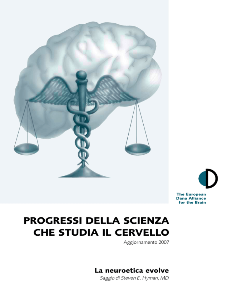 PROGRESSI DELLA SCIENZA CHE STUDIA IL CERVELLO Aggiornamento 2007 La neuroetica evolve Saggio di Steven E. Hyman, MD PROGRESSI DELLA SCIENZA CHE STUDIA IL CERVELLO La neuroetica evolve Saggio di Steven E. Hyman, MD Aggiornamento 2007 THE EUROPEAN DANA ALLIANCE FOR THE BRAIN EXECUTIVE COMMITTEE William Safire, Chairman Edward F. Rover, President Colin Blakemore, PhD, ScD, FRS, Vice Chairman Pierre J. Magistretti, MD, PhD, Vice Chairman Carlos Belmonte, MD, PhD Anders Björklund, MD, PhD Joël Bockaert, PhD Albert Gjedde, MD, FRSC Sten Grillner, MD, PhD Malgorzata Kossut, MSc, PhD Richard Morris, Dphil, FRSE, FRS Dominique Poulain, MD, DSc Wolf Singer, MD, PhD Piergiorgio Strata, MD, PhD Eva Syková, MD, PhD, DSc Executive Committee Barbara E. Gill, Executive Director La European Dana Alliance for the Brain (EDAB) riunisce circa 186 tra i più grandi specialisti delle neuroscienze di 27 paesi, compresi 5 premi Nobel, che si sono dati come obbiettivo di sensibilizzare il pubblico sull’importanza della ricerca sul cervello. Fondata nel 1997, questa organizzazione è attiva a vari livelli dal laboratorio di ricerca fino al pubblico. Per ulteriori informazioni : The European Dana Alliance for the Brain Dr.essa Béatrice Roth, PhD Centre de Neurosciences Psychiatriques Site de Cery 1008 Prilly / Lausanne e-mail : [email protected] Copertina : Jennifer Suehs PROGRESSI DELLA SCIENZA CHE STUDIA IL CERVELLO Aggiornamento 2007 La neuroetica evolve 5 11 Introduzione di David C. Van Essen, PhD La neuroetica: ha cinque anni e continua a svilupparsi di Steven E. Hyman, MD I progressi della ricerca sul cervello nel 2006 17 Le patologie che appaiono nel corso dell’infanzia 25 I disturbi del movimento 33 Le lesioni del sistema nervoso 39 Neuroetica 47 Le malattie neuroimmunologiche 57 Il dolore 63 I disturbi psichiatrici, del comportamento e le dipendenze 73 I disturbi sensoriali e delle funzioni corporee 81 Cellule staminali e neurogenesi 91 I disturbi del pensiero e della memoria 99 Referenze 111 Immaginate un mondo... Introduzione di David C. Van Essen, PhD Presidente della Society for Neuroscience I l presente opuscolo vi offre un aggiornamento sulla ricerca nel campo delle neuroscienze. Nelle pagine che seguono sono presentate oltre un centinaio di recenti scoperte che illustrano il contributo della ricerca per il miglioramento della diagnosi, dei trattamenti e della comprensione di numerose malattie e gravi disturbi del sistema nervoso centrale. Ogni capitolo approfondisce una determinata categoria di disturbi, mentre il capitolo dedicato alla neuroetica analizza in modo trasversale le questioni comuni all’insieme della ricerca sul cervello. Le scoperte citate, delle vere «pepite di neuroscienze», così come i temi più generali che emergono da questo aggiornamento, costituiscono un ritaglio significativo di quanto è oggi fatto per comprendere il cervello umano, in buona salute oppure malato. Il cervello umano è una struttura incredibilmente complessa, che elabora l’informazione e controlla ogni aspetto del nostro comportamento. Con i suoi intricati circuiti neuronali costituiti da miliardi di neuroni e miliardi di miliardi di sinapsi, è l’organo più complicato del corpo umano. La complessità si manifesta a diversi livelli. A livello molecolare e cellulare, implica una complicata coreografia di segnali molecolari che trasmettono l’informazione da una cellula all’altra e regola l’intensità di questi segnali durante lo sviluppo e l’apprendimento. A livello di sistema coinvolge una sinfonia di diversi pattern di attività, basati su migliaia di strutture cerebrali differenti che comunicano attraverso decine di migliaia di vie anatomiche diverse. Grazie alla complessità cerebrale esiste una grande variabilità individuale delle strutture e delle funzioni cerebrali, che spiega l’enorme diversificazione delle personalità e dei mezzi intellettuali dell’essere umano. Data questa sbalorditiva complessità – infinitamente più grande di quella di una navetta spaziale o di un supercomputer – non stupisce che siano 5 così numerose le disfunzioni che possono colpire il sistema nervoso. I disturbi e le malattie identificate in questo ambito sono più di mille e la lista continua ad allungarsi. Le patologie più frequenti come la malattia di Alzheimer, la schizofrenia, l’ictus cerebrale, i disturbi dell’apprendimento, colpiscono una parte importante della popolazione e rappresentano un importante fardello per la società in termini non solo economici, ma anche di preoccupazioni e sofferenza umana. La speranza di vita della popolazione continua ad aumentare; senza grandi progressi nella prevenzione e nel trattamento dei disturbi del sistema nervoso, il carico di queste patologie continuerà a crescere. Per accelerare il corso della ricerca occorre una conoscenza approfondita dei meccanismi fisiologici e patologici del funzionamento e della plasticità del cervello. I progressi che ne deriveranno, alcuni dei quali sono segnalati in questo aggiornamento, permetteranno di utilizzare al meglio le normali capacità del cervello di rigenerarsi, ripararsi ed adattarsi alle lesioni e alle malattie. I progressi realizzati nel 2006 dalle neuroscienze offrono molti spunti. Uno tra i molti è il miglioramento della caratterizzazione dei fattori genetici che contribuiscono alla molteplicità dei disturbi neurologici e psichiatrici, che va dalla delucidazione del ruolo svolto da specifici geni nella forma familiare della malattia di Parkinson fino all’identificazione dei geni implicati nell’ansia in un modello murino 1-3. Un’altra strategia efficace emersa dalle ricerche è stata quella di combinare le conoscenze su un gene con un altro approccio sperimentale come ad esempio il neuroimaging. Un esempio interessante illustrato in questo aggiornamento implica l’uso della risonanza magnetica per caratterizzare le anomalie cerebrali (strutturali e funzionali) in individui portatori di 