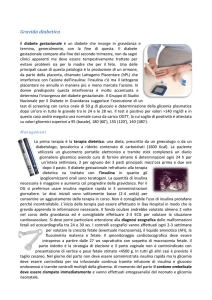 Dott. ssa Valentina Fagnani Chinesiologa - Coordinatrice sportiva Team “gli Squaletti” e “ le SqualOtte” www.lesqualotte.it Piscina comunale Sambuceto Fisicoidea Montesilvano 320 3009040 Abruzzo Pocket Salute ATTIVITÀ FISICA E DIABETE GESTAZIONALE l diabete è un disordine complesso del metabolismo dei carboidrati, ma anche dei lipidi e delle proteine, dovuto Il diabete gestazionale o gravidico compare per la prima volta durante la gravidanza, in una donna che prima del concepimento non era diabetica. Possiamo riscontrare anche donne con diabete pre-gravidico, ovvero di tipo 1, insorto in età giovanile. La gravidanza può essere considerata un “Evento Diabetogeno”, in quanto essa crea uno squilibrio tra ormoni iper-glicemizzanti (glucagone, catecolamine, cortisolo e Gh) e l’ormone ipo-glicemizzante (insulina). Questo squilibrio provoca un’aumentata richiesta d’insulina, condizione molto simile al diabete di tipo 2. Probabilmente in queste donne gli ormoni iper-glicemizzanti sono più elevati e in gravidanza si crea, soprattutto nel primo trimestre, un ambiente favorevole all’insorgenza di iper-glicemia. In questi casi è lecito pensare all’esistenza di una condizione predisponente. Chi è predisposto? Sicuramente sono predisposte le donne in sovrappeso, donne nate da madri in sovrappeso, donne che alla nascita erano macrosomiche (> 4Kg). Che cosa avviene nelle donne a cui è stato diagnosticato un diabete gestazionale? Le donne che hanno un’alta probabilità di sviluppare un Diabete Franco entro i successivi 5 anni. Il diabete gestazionale oltre ad essere legato alla predisposizione genetica, è anche favorito da uno stile di vita sedentario. Il tessuto adiposo riduce la sensibilità dei tessuti all’insulina, portando così ad una condizione chiamata “insulino-resistenza”, tipica del diabete di tipo 2 che, come detto prima, ha una probabilità d’insorgenza maggiore nelle donne a cui è stato diagnosticato un diabete gestazionale. L’Insulina, essendo un ormone anabolizzante, nelle concentrazioni corrette fa sì che vi sia una giusta omeostasi e un corretto equilibrio tra componente “magra” e componente “grassa” della massa corporea. Durante la gravidanza quindi sarà di fondamentale importanza il controllo del peso corporeo, che si otterrà attraverso una corretta alimentazione e attraverso l’attività fare in gravidanza? E’ ormai noto a ta in ambiente acquatico, sia per lo “sgravio” del peso sia perché l’attività è di tipo aerobico e quindi ottimale per il mantenimento del peso e del tono muscolare. L’esercizio aerobil’apparato cardio-polmonare: in altre parole contrasta l’astenia, l’affaticamento durante la respirazione: attraverso il controllo metabolico la gestante si sentirà più vitale e attiva. L’attività aerobica porta anche a una stabilizzazione dei battiti cardiaci e degli atti respiratori, di conseguenza ad un’ossigenazione centrale e periferica ottimale. corretta alimentazione sono l’unica reale soluzione per contrastare il diabete gestazionale, soprattutto nei casi di predisposizione genetica. ...l’informazione continua sul web, collegati su www.pocketsalute.it 37
