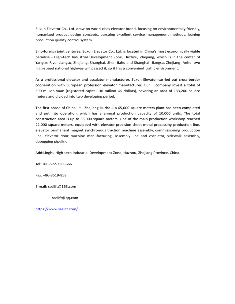 Suxun Elevator Co., Ltd. draw on world-class elevator brand, focusing on environmentally friendly,