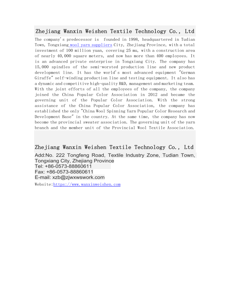 Zhejiang Wanxin Weishen Textile Technology Co., Ltd