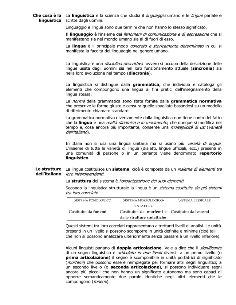 Linguistica: Definizione, Strutture e Sistema Fonologico Italiano