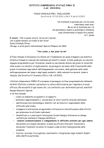 MODULO 2 NORMATIVA SULL’ INCLUSIONE 126 CAPITOLO 1: STORIA DELLA NORMATIVA SULL’ INCLUSIONE 1.1: I PRIMI TENTATIVI DI INTEGRAZIONE DEI DISABILI L’inserimento scolastico dei disabili è stato a lungo condizionato da un pregiudizio. Sin dall’antichità la menomazione fisica è stato un fattore discriminante per l’integrazione e un motivo di emarginazione sociale. IPPOCRATE (460-377 a.C.) fu uno dei primi filosofi che considerando le malattie mentali il risultato di un’alterazione dei fluidi corporei, respinse le credenze circa le cause dei disturbi del comportamento individuabili nei demoni capaci di impossessarsi dei corpi. Alla fine del Medioevo furono realizzati i primi manicomi luoghi di crudele reclusione e Solamente nel XVIII sec furono migliorate le disumane modalità di trattamento dei pazienti con disturbi psichici. È solamente alla metà del XX sec che si comprende che ciò che bisognava esorcizzare con una cura era il pregiudizio. Nel 1784 in Francia i bambini con disabilità vennero accolti in varie istituzioni ma erano sempre visti come un male da nascondere e da rimuovere. I primi tentativi di integrazione dei soggetti disabili risalgono alla Francia dell'Illuminismo in cui con la lente dei valori del progresso e della scienza l’anormalità fu vista come una condizione umana che non pregiudicava la dignità dell’individuo, questi valori trovano terreno fertile nella rivoluzione francese quando venne sancito il diritto di uguaglianza per tutti gli uomini. Risale a questo periodo l’istituzione delle prime case di cura in Francia e in Inghilterra per l’assistenza ai disabili. In Italia bisognerà attendere la fine del XIX sec per l’apertura dei primi centri specializzati: ● Nel 1898 De Sanctis fondò a Roma un centro per la cura e la riabilitazione dei bambini affetti da deficit psicofisici ● a Roma grazie a Maria Montessori sorse la prima scuola magistrale ● furono istituite le prime scuole speciale per iniziative comunali o di enti assistenziali per garantire assistenza ai bambini con deficit. 1.2: LE RIFORME SULL’INTEGRAZIONE DEI DISABILI NEL REGIME FASCISTA Il regime fascista trascurò l’educazione dei disabili, la RIFORMA GENTILE estendeva l’obbligo scolastico solo ai ciechi e ai sordomuti che non presentassero altre anormalità, in apposite classi differenziali o in speciali istituti tramite una serie di regi decreti: ● RD 653/1925 si attribuiva al preside la facoltà di allontanare dall’istituto gli alunni affetti da malattie contagiose o ripugnanti. ● RD 577/1928 si sanciva l’obbligatorietà dell’istruzione fino al quattordicesimo anno e ne confermava l’estensione per ciechi e sordomuti. ● RD 1297/1928 dispose l’istituzione di scuole speciali per sordomuti e per ciechi, classi differenziali per ritardati e/o indisciplinati. Disponeva infine che quando gli atti di 127 permanente indisciplina potessero derivare da anomalità psichiche il maestro poteva proporre l’allontanamento nelle classi differenziali. Nel 1933 vennero introdotte le scuole speciali per i ragazzi affetti da malattie contagiose, fanciulli anormali e minorati fisici. Quella della scuola fascista era un’istituzione rigida in cui non viene tenuto conto dei bisogni e delle possibilità degli studenti. 1.3: LE RIFORME SULL’INTEGRAZIONE DEI DISABILI NEL SECONDO DOPOGUERRA Con l’instaurazione della Repubblica , la Costituzione Italiana sancisce alcuni principi fondamentali: ● quelli di solidarietà politica, economica e sociale ● quello di uguaglianza e pari dignità sociale di tutti i cittadini Per garantire tale uguaglianza si individua come strada la rimozione degli ostacoli di ordine economico e sociale e si crea i presupposti per creare una società nuova fondata sulla differenza come valore. Con la CM 1771-12 del 1953 si dà la definizione di scuole speciali e si chiarisce la differenza tra: ● CLASSI SPECIALI PER MINORATI: dove si impartisce l’insegnamento elementare ai fanciulli aventi determinate minorazioni fisiche o psichiche ● CLASSI DIFFERENZIALI: funzionano presso le scuole comuni e accolgono alunni nervosi, tardivi, instabili i quali rivelano l’inadattabilità alla disciplina comune. 1.3.1: LA DICHIARAZIONE DEI DIRITTI DEL FANCIULLO La Dichiarazione dei diritti del fanciullo propriamente detta è stata stilata e firmata dalla Società delle Nazioni nel 1924. In seguito ai disastrosi avvenimenti della prima guerra mondiale, il mondo intero sentì il bisogno di sancire quelli che dovevano essere i diritti inalienabili anche dei bambini e degli adolescenti. Con l’istituzione dell’Onu, la dichiarazione fu approvata il 20 novembre 1959. La Dichiarazione dei diritti del bambino, comunemente nota come Dichiarazione di Ginevra si compone di dieci principi. Il più importante e significativo è sicuramente il primo: a tutti i bambini devono essere riconosciuti tutti i diritti elencati nel documento, come protezione, amore e comprensione. Questo documento è vincolante, se non dal punto di vista giuridico, sicuramente da quello morale. Con questo documento gli uomini e le donne di tutte le Nazioni, riconoscendo che l'umanità deve al bambino quanto di meglio possiede, dichiarano e accettano come loro dovere che, oltre e prima di ogni considerazione di razza, nazionalità o credo: ● Al bambino si devono dare i mezzi necessari per il suo normale sviluppo, sia materiale che spirituale; ● Il bambino che ha fame deve essere nutrito; il bambino malato deve essere curato; il bambino arretrato deve essere stimolato; il bambino delinquente deve essere recuperato; l'orfano e il trovatello devono essere ospitati e soccorsi; ● Il bambino deve essere il primo a ricevere soccorso in tempo di difficoltà; ● Il bambino deve essere messo in condizione di guadagnarsi da vivere e deve essere protetto contro ogni forma di sfruttamento; ● Il bambino deve essere allevato nella consapevolezza che le sue migliori qualità devono essere messi al ser