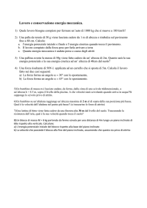 ** ITN - Caboto - Gaeta ** Fisica - prof. Vindice Luigi - CALCOLO DELLA FORZA D’ATTRITO PER UN CORPO APPOGGIATO SU UN PIANO INCLINATO ESERCIZIO Un corpo di massa 300kg è appoggiato su un piano inclinato avente l=10m, h=6m e il coefficiente d’attrito radente è pari a 0,30: verifichiamo se tale corpo tende a scivolare. Dati: m=300kg kar=0,30 l=10m h=6m Svolgimento Il peso del corpo è Fp = m ⋅ g = 300kg ⋅10m / s 2 = 3000 N Dove g è l’accelerazione di gravità della terra che è pari a 9,81m/s2 ma che approssimiamo a 10m/s2. Quindi scomponiamo la forza peso secondo la normale e la parallela al piano ricavando quindi N e T. N= Fp ⋅ h l = 3000N ⋅ 6m = 1800N 10m Essendo il piano inclinato un triangolo rettangolo ricaviamo la base con il teorema di Pitagora b = l 2 − h 2 = (10m) 2 − (6m) 2 = 64m 2 = 8m T= Fp ⋅ b l = 3000N ⋅ 8m = 2400N 10m A questo punto ricaviamo la forza d’attrito radente Far = k ar ⋅ N = 0,30 ⋅1800 N = 540 N Con Far= forza d’attrito radente kar= coefficiente di attrito radente N= forza che agisce perpendicolarmente alla superficie Pertanto essendo Far < T prevale T che fa scivolare il corpo.