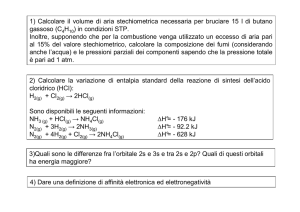 20 esercizi interattivi 1 ■ L’equilibrio dinamico 1Spiega il significato dei seguenti termini relativi ●●● all’equilibrio chimico. a) dinamico b) reversibile 2 C he cosa accade a livello microscopico una volta ●●● raggiunto l’equilibrio? 3 Una miscela gassosa contiene ossigeno e azoto. Le ●●● concentrazioni dei gas restano invariate nel tempo. ■■ La miscela è all’equilibrio chimico? 4Quale tipo di situazione si verifica se in un piccolo ●●● lago l’acqua entra ed esce con la stessa portata? 5 Quale grandezza macroscopica permette di afferma●●● re che un sistema chiuso, costituito da cristalli di iodio che sublimano liberando vapori violetti, è in equilibrio? Quali sono i processi opposti che avanzano a uguale velocità? 6 Descrivi l’equilibrio dinamico che si stabilisce in una ●●● soluzione satura di acqua e zucchero. 7 Perché un recipiente chiuso contenente del bromo ●●● liquido si può definire un sistema all’equilibrio? Quale grandezza macroscopica rimane costante? 2 ■ L’equilibrio chimico: anche i prodotti reagiscono 8 Considera la reazione di decomposizione del peros●●● sido di idrogeno. ■■ Quali sono i prodotti della reazione? ■■ Quando il sistema avrà raggiunto l’equilibrio quali sostanze saranno presenti? 9 Nelle reazioni di combustione una sostanza combu●●● stibile, per esempio la benzina, viene fatta reagire con un comburente, tipicamente l’ossigeno. I prodotti delle combustioni sono diossido di carbonio e acqua. ■■ Il sistema benzina-ossigeno è in equilibrio? In ba- se a quali considerazioni lo affermi? 10 L’O2 è trasportato dall'emoglobina contenuta all'in●●● terno dei globuli rossi. Ciascuna molecola di emoglobina può reagire con quattro molecole di O2; il legame che si stabilisce è reversibile e la quantità di O2 legato all’emoglobina dipende dalla quantità di O2 sciolto nel sangue. ■■ In quale direzione procede la reazione a livello dei polmoni? E a livello dei tessuti? L'equilibrio chimico 13 capitolo 11 Spiega perché la reazione chimica diretta e quella in●●● versa si trovano, a un certo punto, a procedere alla medesima velocità. Rispondi in otto righe. 12 Considera l’equilibrio 2HI(g) → H2(g) + I2(g). Quali ●●● nuove molecole potresti osservare se venisse aggiunta una miscela, anch’essa all’equilibrio, dove il trizio sostituisce l’idrogeno? E nel caso in cui lo iodio fosse costituito solo da molecole del suo isotopo 131I? 13Un uomo anziano limitato nei movimenti e un ra●●● gazzo abitano in due case confinanti, con giardini di uguale area separati da uno steccato presso il quale vi è un albero di mele. Decidono di liberarsi delle mele cadute nelle rispettive proprietà lanciandole l’uno nel giardino dell’altro. La battaglia delle mele, dopo un certo tempo, giunge a una situazione di equilibrio in cui il giovane e il vecchio lanciano con la stessa velocità. Sai dire se, a questo punto, anche il numero delle mele, o meglio la loro concentrazione, può essere la stessa? E se i contendenti avessero avuto la stessa agilità fisica? 3 ■ La costante di equilibrio 14 Che cosa si intende per Kp? Rispondi in cinque ri●●● ghe. 15A 1000 K la reazione N2(g) + 3H2(g) ⇄ 2NH3(g) ha co●●● stante d’equilibrio Keq = 0,0024. ■■ La reazione è più spostata a destra o a sinistra? 16Scrivi la reazione corrispondente all’equazione ●●● [H2]3 ∙ [C2H2] Keq = [CH4]2 17 Scrivi le equazioni per la costante d’equilibrio delle ●●● seguenti reazioni. a)4NH3(g) + 3O2(g) ⇄ 2N2(g) + 6H2O(g) b)CH4(g) + 4F2(g) ⇄ CF4(g) + 4HF(g) 18 Considera il seguente sistema: ●●● N2O4(g) ⇄ 2NO2(g) All’equilibrio, le concentrazioni di N2O4 e NO2 sono rispettivamente 0,0292 mol/L e 0,0116 mol/L. ■■ Calcola il valore della costante di equilibrio. 19 L’ossido di azoto reagisce con l’ossigeno secondo la ●●● reazione 2NO + O2 ⇄ N2O4 ■■ Scrivi l’espressione della costante di equilibrio per questa reazione e poi, sapendo che il valore della Keq è 250, calcola il valore della concentrazione molare di N2O4 all’equilibrio quando [NO] = 1,57 ∙ 10−1 M e [O2] = 1,21 ∙ 10−1 M. 381 esercizi ebook.scuola.zanichelli.it/concettimodelli parte D Le sostanze interagiscono 20 A 300 K idrogeno e cloro sono in equilibrio con l’a●●● cido cloridrico secondo la reazione: H2(g) + Cl2(g) ⇄ 2HCl(g) ■■ Sapendo che Kp = 4,0 ∙ 1031, quanto vale Kc? 1,54, e all’equilibrio: [CO] = 2,02 ∙ 10−1 M [NO] = 3,93 ∙ 10−1 M [CO2] = 1,42 ∙ 10−1 M Calcola la concentrazione dell’azoto. 21 In una reazione in fase gassosa che ha raggiunto l’e●●● quilibrio, Δn è uguale a 2. Kp è maggiore o minore di Kc? Perché? 29 La dissociazione di Cl2 in atomi di cloro, a 1000 K, ●●● ha una Kc = 1,2 ∙ 10−7. Quale valore assume Kp? 22 Data la generica reazione aA(g) + bB(g) ⇆ cC(g) + dD(g) , ●●● scrivi l’espressione della Kp. Considerando che dalla legge dei gas ideali è possibile ricavare P e che n/V rappresenta la concentrazione molare, trova la relazione che lega Kp e Kc. 30 Un miscuglio gassoso che ha raggiunto l’equilibrio, ●●● è costituito, a 200 atm e 400 °C, nel modo seguente: 42,90% di NH3, 42,81% di H2 e per il volume restante da azoto. Questi gas reagiscono fra loro secondo la reazione reversibile: N2(g) + 3H2(g) ⇄ 2NH3(g) 23 In che modo la costante di equilibrio permette di de●●● scrivere il comportamento della reazione? Rispondi in cinque righe. 24 A una data temperatura, 0,10 mol di H2 e 0,10 mol di ●●● I2 vengono poste in un recipiente da un litro. Dopo un certo tempo viene raggiunto un equilibrio: esercizi ■■ La costante di equilibrio per questa reazione vale ■■ Quanto vale Kp? 31 Il fosgene è un gas (COCl2) utilizzato soprattutto ●●● nell’industria dei polimeri. Per produrlo, si può partire da CO(g) e Cl2(g). Operando in condizio