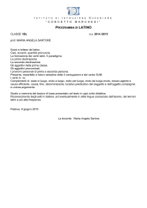 LICEO CLASSICO E LINGUISTICO “C. SYLOS” BITONTO PROGRAMMAZIONE EDUCATIVA E DIDATTICA ANNO SCOLASTICO 2016-/2017 DELLA Prof.ssa Corriero Angela DISCIPLINA : Greco CLASSE I B da valere quale CONTRATTO FORMATIVO OBIETTIVI E CONTENUTI OBIETTIVI MINIMI Dall'analisi dei bisogni formativi (come emersi dalla programmazione di istiuto, di classe e dai test), rapportati alle finalità della disciplina (come stabilito negli incontri per materie), individuare gli obiettivi fondamentali alla base dell’insegnamento. Conoscenza delle parti del discorso della lingua italiana, prerequisito fondamentale per affrontare lo studio delle lingue classiche. Conoscenza dei fondamenti della lingua greca (fonetica,morfologia , sintassi e lessico). Consapevolezza delle identità e delle differenze tra la nostra lingua e quella greca. Lettura corretta di un testo in lingua. Saper identificare le strutture morfosintattiche e gli elementi lessicali fondamentali di un testo. Saper declinare nomi, aggettivi, pronomi ed individuare e coniugare verbi. Affrontare testi in lingua originale d’autore e non, accessibili e graduati per difficoltà. Saper cogliere le caratteristiche e gli aspetti più significativi del mondo e della civiltà greca. RISULTATI ATTESI Indicare le conoscenze (nei livelli minimi), le abilità (cognitive ed operative) e le competenze (di base, trasversali e di applicazione) che gli alunni devono acquisire Individuare,analizzare e organizzare sistematicamente strutture e meccanismi della lingua greca sul piano morfologico, sintattico e semantico-lessicale. Memorizzare i vocaboli che costituiscono i nuclei semantici fondamentali della lingua greca. Usare in modo consapevole gli strumenti di lavoro (vocabolario,appunti,schede) Comprendere e tradurre un testo individuando le modalità per riformularlo secondo le regole di produzione dell’italiano. Consolidare le competenze nella lingua madre attraverso la riflessione sulle strutture linguistiche del greco e il continuo raffronto sul piano lessicale tra le due lingue. Individuare nei testi gli elementi che esprimono la civiltà e la cultura greca. CONTENUTI TEMPI Riportare, sotto forma di unità didattiche o di moduli, i contenuti ritenuti fondamentali per il conseguimento degli obiettivi indicati nella prima colonna e per lo sviluppo delle abilità connesse Indicare i tempi (unità orarie) stimati per la realizzazione delle unità didattiche o moduli L’alfabeto e la pronuncia. I segni ortografici:: segni diacritici, spiriti,accenti, dieresi, apostrofo e coronide. Il sistema fonetico: vocali,dittonghi,consonanti. Quantità delle sillabe e loro divisione. Leggi dell’accentazione. Parole atone: enclitiche e proclitiche. Tema ,desinenza e radice. Gli elementi della declinazione: il numero, il genere e il caso. L’articolo e la I declinazione. La II declinazione e gli aggettivi di I classe. Il fenomeno della contrazione. La declinazione contratta e. quella attica.. Il verbo: generalità, l’aspetto verbale, diatesi, modi finiti e indefiniti,il tempo, il numero e la persona. Formazione dei modi e dei tempi: temi temporali e tema verbale, le desinenze,le coniugazioni l’aumento. Il sistema del presente: il presente dei verbi della I coniugazione e del verbo essere. L’imperfetto dei verbi di I coniugazione e del verbo essere. Presente e imperfetto dei verbi contratti. La III declinazione e gli aggettivi di II classe. La declinazione del participio(diatesi attiva e media). Pronomi personali e dimostrativi. SETTEMBRE OTTOBRE NOVEMBRE DICEMBRE GENNAIO FEBBRAIO MARZO-APRILE MAGGIO METODO VERIFICHE VALUTAZIONE Poiché la competenza linguistica si acquisisce con l’uso della lingua è necessario un ricorso immediato a testi accessibili e graduati per difficoltà. Durante la fase iniziale, al fine di consentire l’acquisizione di un metodo corretto di approccio e di studio, si svolgeranno interrogazioni collettive, dal posto, con domande aperte cui risponderà chi saprà risolvere il problema posto, sia esso di natura fonetica o morfosintattica. Si passerà, in un secondo momento, a una verifica personale (dal posto o alla lavagna) in cui si farà ricorso a frasi, esercizi di integrazione, a questionari mirati alla valutazione della competenza acquisita. La valutazione scaturirà da un’indagine condotta sulle capacità, sulla sensibilità, sulla perseveranza nell’impegno e sullo sforzo compiuto da ciascun alunno in relazione alle sue possibilità intellettive e di rendimento, ai suoi ritmi di apprendimento e alle sue capacità espressive. Per raggiungere tale obbiettivo, si utilizzeranno lezioni frontali e tutte quelle strategie che mirino alla pratica delle regole che governano la lingua quali esercizi di memorizzazione di vocaboli e delle regole che presiedono la fonetica e la morfologia, a frasi e versioni ad hoc anche dall’italiano che sottolineino la struttura studiata, a esercizi di trasformazione e completamento, a questionari, a traduzioni di brani d’autore e non. La stessa ,sarà comunicata agli alunni e motivata. Sono previste almeno due verifiche scritte e due orali per quadrimestre. Nel corso dell’anno, si svolgeranno numerose esercitazioni guidate di traduzione e di analisi dei testi, dedicando particolare attenzione al recupero e al consolidamento degli argomenti trattati e sostenendo gli allievi in difficoltà mirando a renderli gradualmente più autonomi e sicuri, anche con l’uso consapevole degli strumenti di lavoro (vocabolario, appunti, schede). Bitonto, 11-10-‘16 La docente Prof.ssa Angela Corriero