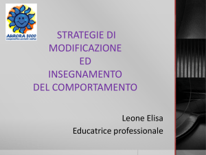 STRATEGIE DI MODIFICAZIONE DEL COMPORTAMENTO La grande mole di studi sull’apprendimento effettuati in ambito comportamentistico (soprattutto da Skinner in poi) ha consentito la delineazione di una metodologia di intervento denominata tecnologia del comportamento o modificazione del comportamento. Meazzini, Barnaba e Fagetti (1981) la definiscono come “un approccio tecnico-scientifico finalizzato a prevenire, affrontare e risolvere (con procedure suscettibili di verifica intersoggettiva) problemi di natura comportamentale presenti nel singolo e nel gruppo" (p. 6). Esula certamente dai fini di questo lavoro, come già detto, l’analisi delle premesse teoriche alla base della metodologia di intervento comportamentale. Mi limito, in questa sede, ad illustrare le principali strategie di valutazione e di intervento educativo, alle quali fanno in parte riferimento anche altri metodi di intervento che saranno affrontati in seguito. Nello specifico mi soffermerò: - sulle procedure per condurre l’osservazione dei repertori di abilità e difficoltà dei bambini (assessment comportamentale); sulle strategie per potenziare comportamenti positivi; sulle strategie per decrescere comportamenti problematici. 2.1. La valutazione delle abilità La costruzione e la realizzazione di un piano di intervento personalizzato per il bambino autistico, deve necessariamente prendere lo spunto da una valutazione precisa delle sue capacità e delle carenze che presenta nei vari repertori di abilità cognitive e comportamentali. L’approccio di modificazione del comportamento prevede tre diverse modalità di analisi: - una valutazione qualitativa delle abilità e delle difficoltà; una valutazione quantitativa dei problemi comportamentali; una valutazione funzionale finalizzata a comprendere le motivazioni alla base dei comportamenti-problema. a) Valutazione qualitativa delle abilità e delle difficoltà L'indagine iniziale dei vari repertori viene effettuata tramite strumenti denominati check-list o liste di rilevazione strutturate. Si tratta di elenchi di abilità e di specifici comportamenti sequenziati in ordine gerarchico, i quali permettono di sistematizzare l'osservazione e di constatare la presenza o l'assenza di un oggetto e di un fenomeno (abilità e singoli comportamenti), senza che si formulino giudizi di valore. Consentono, inoltre, di uscire dall'intuitività e dalla soggettività solitamente associate al momento osservativo. L'educatore, utilizzando tali strumenti, viene ad acquisire dei precisi punti di riferimento osservabili e misurabili, su cui costruire programmi finalizzati all'incremento di abilità nell'allievo. Le check-list possono essere distinte in globali e a focalizzazione crescente. Alla prima categoria appartengono quelle liste che tentano una valutazione completa di tutti i repertori di abilità del soggetto, senza andare troppo in profondità nella suddivisione delle abilità in comportamenti specifici. Rappresentano il primo strumento di cui servirsi, in quanto forniscono una visione abbastanza indicativa senza richiedere costi eccessivi (in ordine di tempo) e preparazione particolare da parte dell'educatore che le somministra. Volendo andare più in profondità nell'analisi della situazione si può ricorrere a check-list più sofisticate, contenenti cioè un maggior numero di item, o specifiche (a focalizzazione crescente), che prendono in considerazione solo quei repertori rivelatisi carenti con le check-list del primo tipo (ad esempio: liste per l'analisi delle abilità grossomotorie; per il linguaggio; per le abilità di autonomia; per le abilità lessiche e grafiche; ecc.). L’utilizzo delle check-list per l’analisi del comportamento del bambino autistico è comune a vari metodi di trattamento che verranno presi in considerazione anche in seguito. Rientrano in tale categoria di strumenti, infatti, il CARS (Schopler, Reichler, Devellis e Daly, 1980), il PEP e l’APEP del metodo TEACCH (Schopler, Reichler e Bashford, 1990), i “Profili di sviluppo” del metodo Delacato (Delacato, 1974), le liste di rilevazione del Metodo Portage (Bluma, Shearer, Frohman e Hilliard, 1990), ecc. b) Valutazione quantitativa dei problemi comportamentali (osservazione sistematica) In molti casi, per approntare una adeguata programmazione e condurre un corretto intervento educativo, non è sufficiente verificare la presenza o meno di certe abilità o comportamenti, ma si richiede anche una loro valutazione quantitativa. Alcune risposte comportamentali, infatti, di per sé non eccessivamente negative, possono divenire preoccupanti se si manifestano con molta frequenza e/o eccessiva intensità e/o per molto tempo (durata). Inoltre, se ci si limita solo a sottolineare che il soggetto non sa fare qualcosa non si fornisce una informazione soddisfacente. 'Non saper fare qualcosa' può significare che la risposta richiesta è totalmente assente o che viene emessa in maniera non accurata o con poca frequenza o per un tempo troppo breve o con un eccessivo periodo di latenza, ecc.. Ecco quindi l'esigenza, una volta stabiliti con precisione i comportamenti oggetto di osservazione, di valutare opportunamente i principali parametri quantitativi che sono: frequenza, durata e intensità. Prima di illustrare le modalità di effettuazione di tali osservazioni è importante sottolineare la necessità di definire i comportamenti in maniera obiettiva, senza ricorrere ad etichette o a generiche classificazioni personali. L'educatore deve limitarsi a descrivere ciò che un individuo fa in un determinato momento, evitando di far emergere la propria interpretazione e valutazione del comportamento che viene descritto (Meazzini, 1978). L'osservazione dell'educatore può concentrarsi sia su comportamenti positivi e desiderabili che si spera di poter incrementare, sia su comportamenti inadeguati che invece ci si prefigge di estinguere o ridurre di incidenza. Nel primo caso si parla di comportamenti-meta (goal behavior
