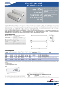 HCL. Indicatori di livello a colonna RoHS con armatura di base ad U, tecnopolimero 1 TERMINALI DI FISSAGGIO Tecnopolimero a base poliammidica (PA) rinforzato con fibra di vetro, in colore nero. 2 ARMATURA DI BASE Alluminio in colore naturale, ruotabile di 90° in caso di necessità. 3 VISIERA DI LIVELLO A COLONNA Tubo trasparente in polimetilmetacrilato (PMMA). 4 5 6 7 8 9 10 11 12 13 14 15 +70° -20° VITI Acciaio zincato con cava esagonale. GUARNIZIONI DI TENUTA OR in gomma sintetica NBR. MOSTRINA GRADUATA In materiale plastico resistente a oli, grassi. Applicata all'armatura di base in alluminio a mezzo di una pellicola adesiva. TEMPERATURA MASSIMA DI ESERCIZIO IN CONTINUO 70° C (funzionamento con olio e/o acqua). DATI TECNICI In prove di laboratorio effettuate con olio minerale tipo CB68 (secondo ISO 3498), a 23°C per un tempo relativamente limitato, si sono trovati i seguenti valori di tenuta alla pressione: -- HCL.300 30 bar -- HCL.400 25 bar -- HCL.500 20 bar -- In presenza di altri oli o fluidi e in condizioni di pressione e temperatura diverse è necessario interpellare il servizio tecnico ELESA. Si consiglia in ogni caso di verificare l'idoneità del prodotto nelle condizioni reali di funzionamento. ESECUZIONI SPECIALI A RICHIESTA -- Indicatori di livello a colonna con tubi ed estremità di fissaggio in materiali diversi per impego con fluidi speciali e/o ad alte temperature. -- Viti in acciaio INOX AISI 316 o in ottone nichelato. -- Galleggiante in tecnopolimero a base poliammidica in colore rosso per evidenziare il livello anche da lontano. -- Indicatori di livello a colonna con interassi di fissaggio fino a 2.000 mm -- Indicatori di livello olio a colonna HCL-E completi di galleggiante, con segnale di minimo livello, contatti normalmente chiusi (NC), normalmente aperti (NO) o di scambio. -- Sensori di livello a posizione variabile, collocabili a piacere lungo l’asse dell'indicatore, con connettori a destra (DX) o a sinistra (SX), contatti normalmente chiusi (NC), normalmente aperti (NO) o di scambio. -- Guarnizione di tenuta EPDM oppure in FKM tipo VITON®*. * Marchio registrato dalla DuPont Dow Elastomers. Accessori per oleodinamica RH 1226 Codice Descrizione f d A B C L l1 l2 r d'-0.2 f'±0.2 C# [Nm] 111211 HCL-300-M12 300 M12 13.5 28.5 35 326 42 242 13 12.5 300 15 227 111221 HCL-400-M12 400 M12 13.5 28.5 35 426 42 342 13 12.5 400 15 268 111231 HCL-500-M12 500 M12 13.5 28.5 35 526 42 442 13 12.5 500 15 306 # Coppia massima di serraggio. Proprietà dei modelli riservata ai termini di legge. Disegni e immagini non riproducibili se non citando la fonte. Settembre 2016 Avvertenze per una efficace protezione dei contatti Reed Le caratteristiche elettriche dei contatti Reed, riportati nelle tabelle descrittive, sono forniti dai costruttori. Nel momento in cui si installa un contatto Reed, bisogna prestare particolare attenzione al tipo di carico a cui sarà connesso. Carichi di tipo induttivo, capacitivo o lampade possono, per loro stessa natura, determinare picchi transienti di tensione o corrente durante il loro funzionamento. Tali picchi possono danneggiare il contatto Reed o ridurne drasticamente la vita. Carico induttivo Carico Capacitivo Quando il contatto Reed viene utilizzato per pilotare un carico induttivo come motori, elettrovalvole, solenoidi, l’energia accumulata nel carico potrà causare una tensione inversa nel momento in cui il contatto Reed commuta. L’entità di tale tensione é direttamente proporzionale al valore dell’induttanza. I seguenti circuiti introducono una protezione per queste casistiche. Nel caso in cui un condensatore sia connesso in serie o in parallelo con un contatto Reed in un circuito chiuso, le correnti di carica e scarica del condensatore durante le commutazioni possono causare un deterioramento del contatto Reed stesso. La soluzione più semplice ed efficace in questa situazione è posizionare una resistenza direttamente in serie al contatto Reed o in generale opportunamente collocata per abbattere il valore massimo delle correnti di carica e scarica. In caso di tensione continua, è sufficiente introdurre un diodo in parallelo al carico rispettando opportunamente la polarità per evitare di compromettere il contatto Reed. In caso di tensione alternata si può usare una resistenza e una capacità in parallelo al contatto Reed. I valori di capacità e resistenza si ottengono dalla seguente formula. Una soluzione alternativa può essere utilizzare un varistore in parallelo al carico. Due esempi di circuito in cui l’energia accumulata nel carico capacitivo “C” genera correnti transienti indesiderate che si scaricano attraverso il contatto Reed. L’utilizzo di una resistenza opportunamente calibrata riduce il valore di tali correnti e preserva la vita del contatto Reed. 1 2 3 4 5 6 7 8 9 10 11 12 13 Lampada 14 15 Capacità di cablaggio Nel caso in cui il contatto Reed sia connesso a un carico attraverso un cavo di lunghezza elevata, la capacità statica del cavo interagirà con il contatto Reed. Se il cavo è più lungo di 50 metri (ma ovviamente bisogna tener conto delle caratteristiche specifiche del singolo cavo) è opportuno inserire una protezione per garantire la durata del contatto Reed. In questa situazione può essere inserita una induttanza in serie al contatto Reed o una piccola resistenza (nell’ordine di 10-500 Ω). RH Accessori per oleodinamica In caso di lampada con filamento in tungsteno, la resistenza del filamento quando la lampada è spenta (filamento freddo) è 10 volte più piccola di quando la lampada è accesa (filamento caldo). Dopo la commutazione del contatto Reed in accensione della lampada, per un certo periodo di tempo la corrente è 10 volte più grande di quella che circolerebbe a regime.Tale corrente può danneggiare il contatto Reed o comprometterne la durata nel tempo. La soluzione in questo caso è introdurre una resistenza in serie al contatto Reed che abbatta il valore massimo della corrent