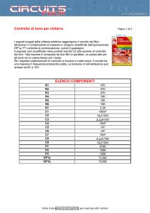 Esercizio Convertitore Tensione - Corrente Dato il circuito di figura: 1. determinare l’espressione generale della corrente iL e le condizioni che devono essere soddisfatte affinché la corrente dipenda solo dalla tensione di ingresso vi. Supponendo che R1=R2=R3=R4=R=10KΩ, che VCC=30V e che ZL sia una resistenza (ZL=RL): 2. determinare i valori di vL, vO, iL con RL=0Ω 3. determinare vL, vO, iL con RL=2KΩ 4. determinare vL, vO, iL con RL=2KΩ 5. determinare il valore RLmax che mantiene l’operazionale ancora in zona lineare 6. determinare vL, vO, iL e vD con RL infinito. 7. rappresentare tutti questi punti di funzionamento sulla caratteristica ingresso-uscita dell’operazionale. Soluzione 1. applicando il primo p. di K. al nodo con potenziale vL si ha: iL i3 i4 vO v L v v L i R3 R4 Osservando che vL e vO sono, rispettivamente, ingresso e uscita di amplificatore con operazionale nella connessione non invertente, si può eliminare, dalla precedente, la variabile vO; R 1 2 v L v L R1 v v L R v v v v iL i 1 2 L L i L R3 R4 R3 R4 R4 R1 R3 iL R vi 1 2 v L R4 R4 R1R3 iL R R R1R3 vi 2 4 v L R4 R R R 1 3 4 Scegliendo le quattro resistenze in modo che risulti R2R4=R1R3 si ottiene il risultato voluto: iL vi R4 per cui la corrente iL, fissati vi e R4, risulta indipendente dalla impedenza ZL che attraversa. Ovviamente iL e vL sono legati dalla relazione che governa la legge del bipolo ZL. Nel caso particolare in cui ZL=RL si ha: iL vi v L R4 RL che consente di ricavare il legame di proporzionalità tra vL e RL con iL costante vL vi RL R4 Naturalmente anche vO varia proporzionalmente a RL dato il legame, ancora di proporzionalità, tra vO e vL. Applicando questi risultati finali si può rispondere alle domande successive. 2. Con RL=0 si ha la seguente soluzione Per la legge di Ohm applicata a RL si impone vL=0 quindi anche vO=0. Con l’operazionale in zona lineare, vD=0 comporta v-=0 e quindi anche i1=i2=0. L’unica corrente diversa da zero è la: iL i4 vi 5V 0,5mA R4 10k a conferma della relazione precedente. 3. Con RL=2kΩ si può calcolare ancora iL vi 5V 0,5mA R4 10k e quindi le correnti su tutti gli altri rami del circuito vL RL 2k vi 5V 1V R4 10k R 10k vO 1 2 v L 1 v L 2 v L 2V R1 10k v 1V i1 L 0,1mA R1 10k v v L 2V 1V i2 O 0,1mA R2 10k v v L 2V 1V i3 O 0,1mA R3 10k v v L 5V 1V i1 i 0,4mA R4 10k Questi valori sono rappresentati nel seguente schema e, applicando il primo principio di K. ai nodi si nota la perfetta coerenza dei risultati ottenuti. 4. Con RL=10kΩ si ha ancora iL vi 5V 0,5mA R4 10k e quindi le correnti su tutti gli altri rami del circuito vL RL 10k vi 5V 5V R4 10k R 10k vO 1 2 v L 1 v L 2 v L 10V R 10 k 1 v 5V i1 L 0,5mA R1 10k v v L 10V 5V i2 O 0,5mA R2 10k v v L 10V 5V i3 O 0,5mA R3 10k v v L 5V 5V i4 i 0mA R4 10k Questi valori sono rappresentati nel seguente schema e, applicando il primo principio di K. ai nodi si nota la perfetta coerenza dei risultati ottenuti. 5. Il valore di RLmax si ottiene il valore della resistenza di carico che produce il massimo valore di uscita, vO=vCC=30V, con operazionale ancora in zona lineare. v L max vO max vO max 30 15V 10k 2 R2 1 1 10 k R 1 RL max R4 vL 15V 10k 30k vi 5V Con procedimento analogo ai precedenti si ottengono le correnti sulle resistenze iL vi 5V 0,5mA R4 10k vL 15V 1,5mA R1 10k v v L 30V 15V i2 O 1,5mA R2 10k v v L 30V 15V i3 O 1,5mA R3 10k v v L 5V 15V i4 i 1mA R4 10k i1 Anche in questo caso il primo p. di K. è pienamente soddisfatto. *** In tutti questi casi il funzionamento in zona lineare dell’operazionale ha garantito il risultato fondamentale iL = vi 5V = = 0,5mA = costante R 4 10kΩ per cui il circuito analizzato risulta essere un generatore a corrente costante. *** 6. Con il valore infinito di RL si ottiene il seguente circuito I valori delle correnti e dei potenziali ai nodi si calcolano facilmente iL 0 vO 30V 1,5mA R1 R2 20k v vi 30V 5V i3 i4 O 1,25mA R3 R4 20k v vi v vi 30V 5V v L vi R3i4 vi R3 O O 17,5V R3 R4 2 2 R1 v v vO O 15V R1 R2 2 i1 i2 v D v L v 17,5V 15V 2,5V >0 operazionale in saturazione In questo ultimo caso non si ha più il funzionamento a corrente costante (iL=0) infatti loperazionale è uscito decisamente dalla zona lineare. 7. Il seguente grafico mostra i cinque punti di funzionamento dell’operazionale sulla sua caratteristica ingresso-uscita.